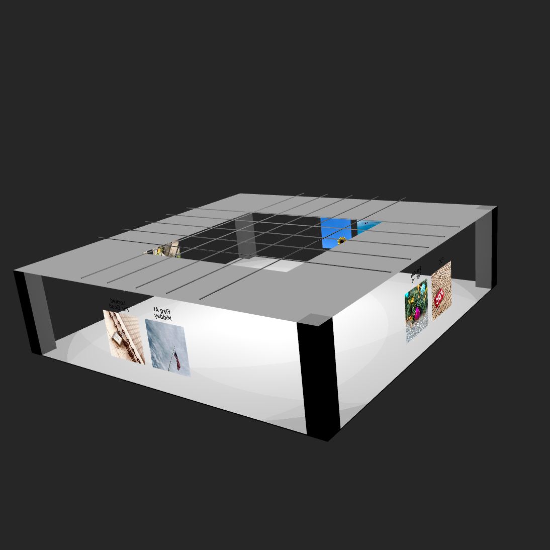 My first 3D outing is a photo gallery with “free style” user navigation. I decided to go with X3D (X3DOM library) because it's a little bit easier to learn than three.js as a 3D beginner. It also appears to be the better option to get up and running quickly.